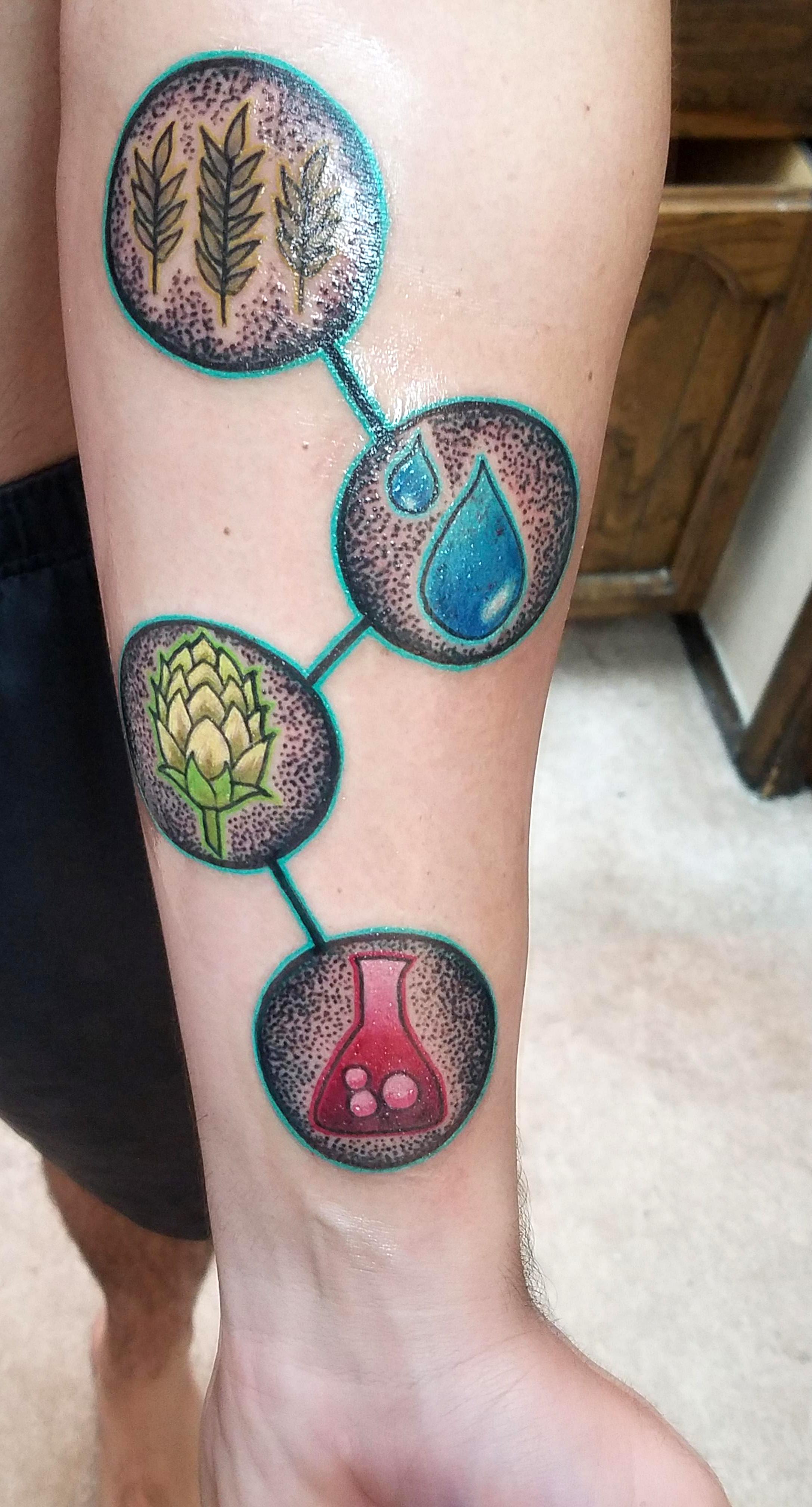 4 ingredients in beer, tattoo. Grantt McConnell at Dermal Grafix in Escondido CA