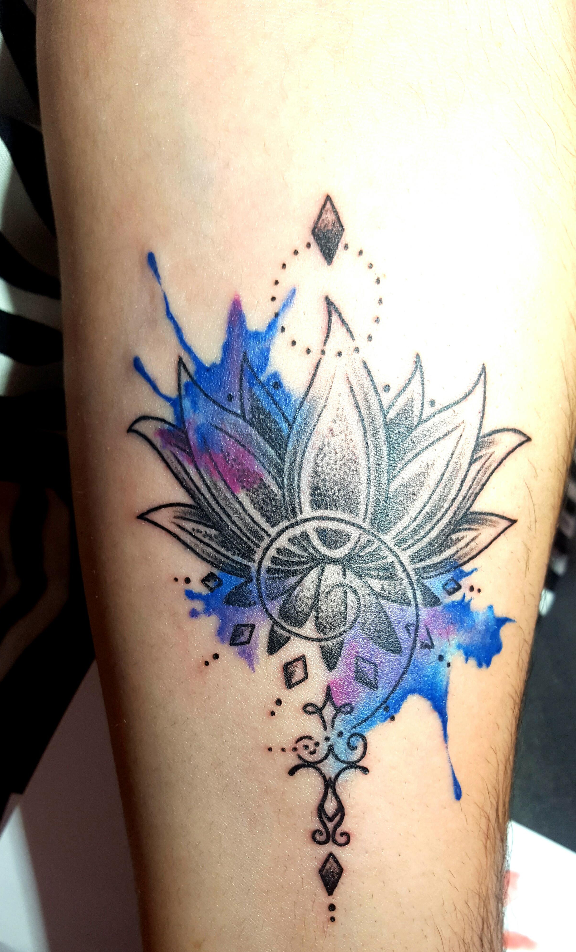 Watercolour Black Lotus, Forearm Tattoo by Ines Vital @ Lucky 13 Albufeira, Portugal
