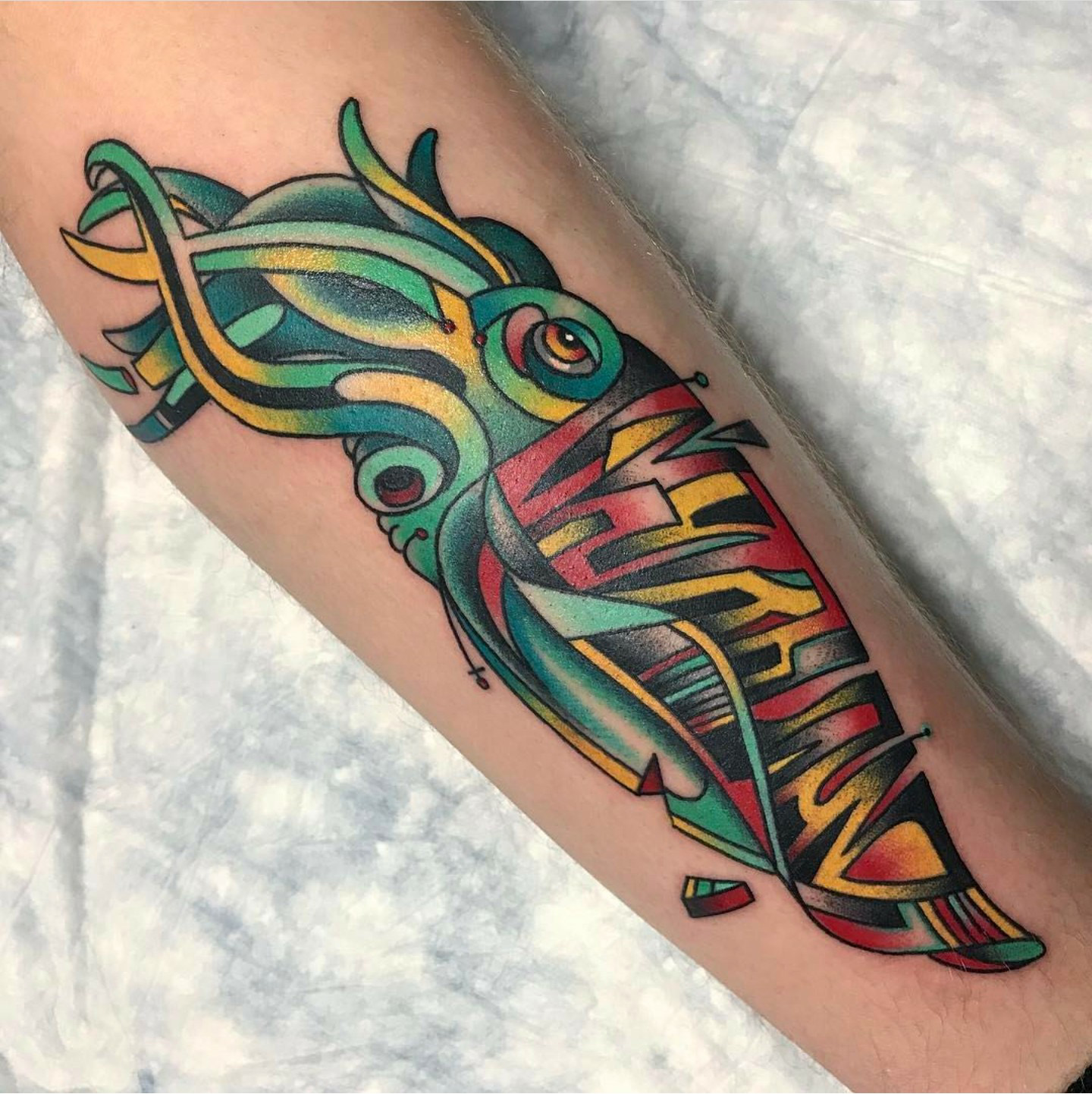 Geometric Cuttlefish ]tattoo By Hoode @ Black Vulture Gallery in Fishtown Pa