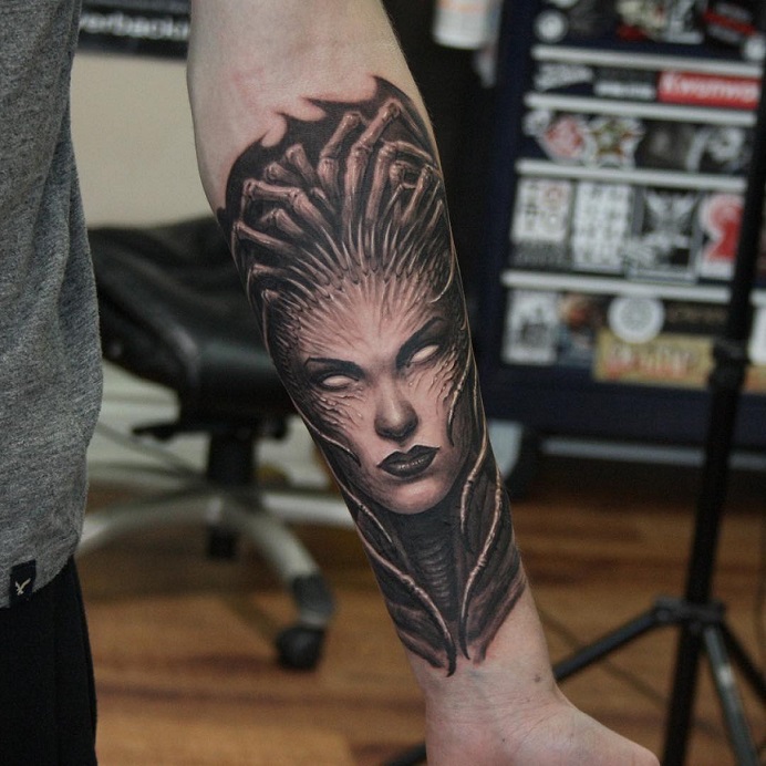 Starcraft Queen of Blades. By Travis Greenough Closed Casket Custom Tattoos, Toronto Canada