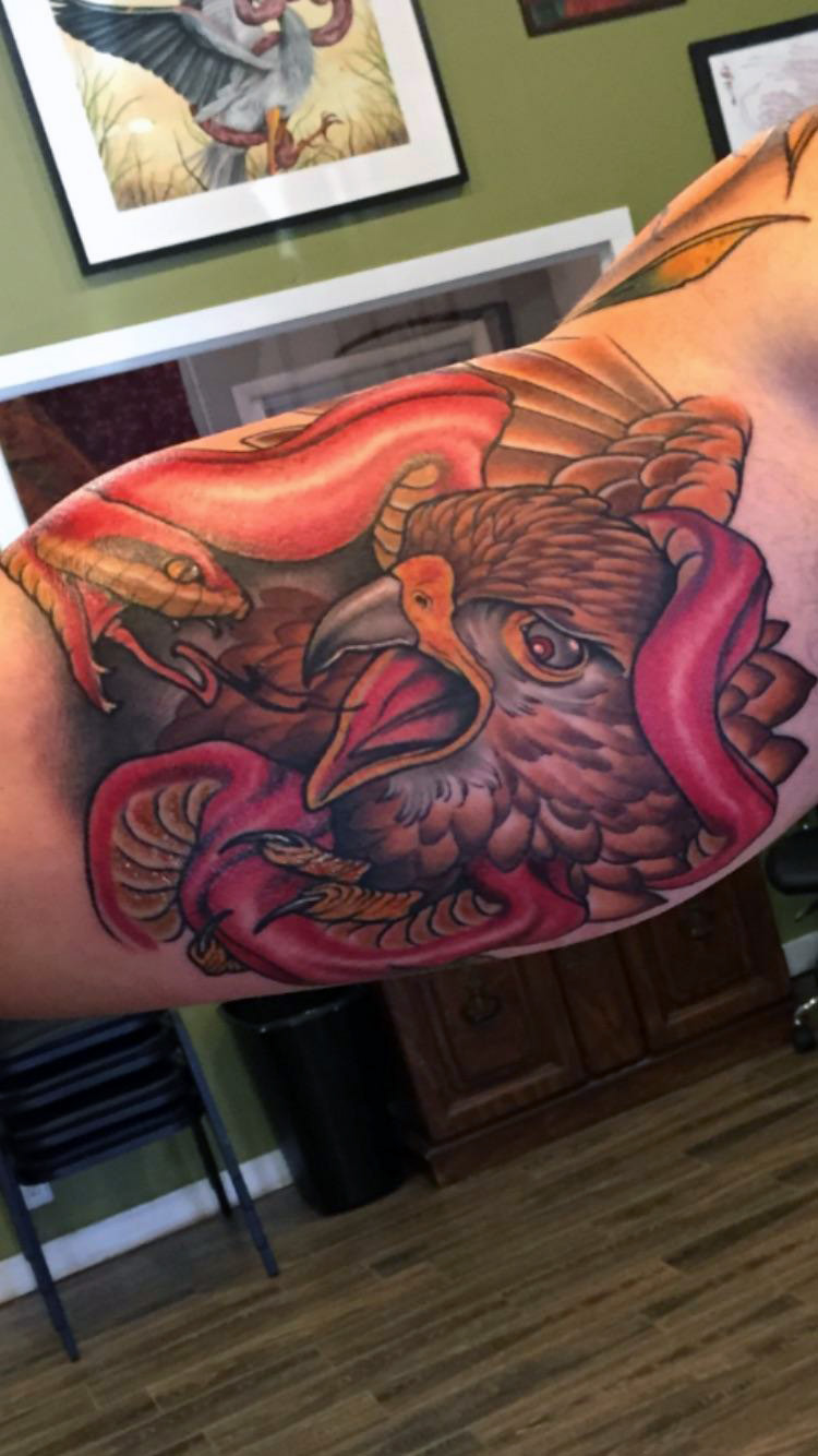 Eagle vs snake by Craig Gardyan at Grim Tattoo Penndel PA