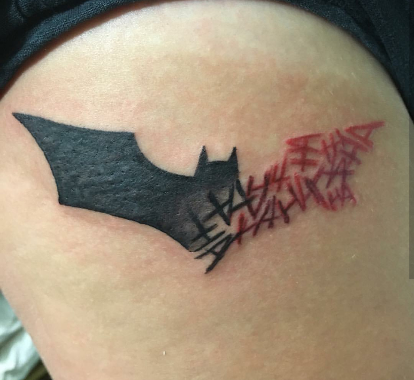 Batman symbol on my upper thigh done by Ryan at the Missing Ink - Washington, NC