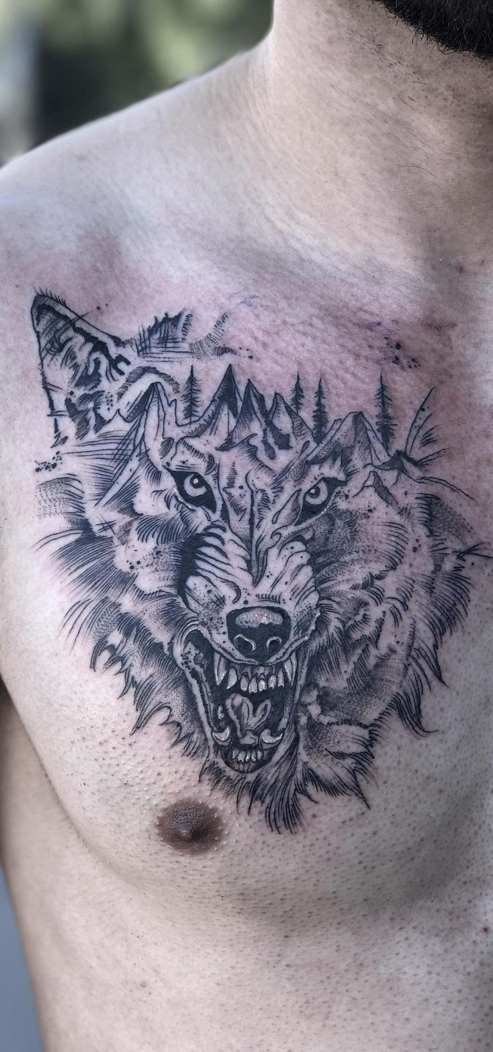 Wolf Mountain by Ben Ervin at Broken Clover Tattoo in Tucson, Arizona