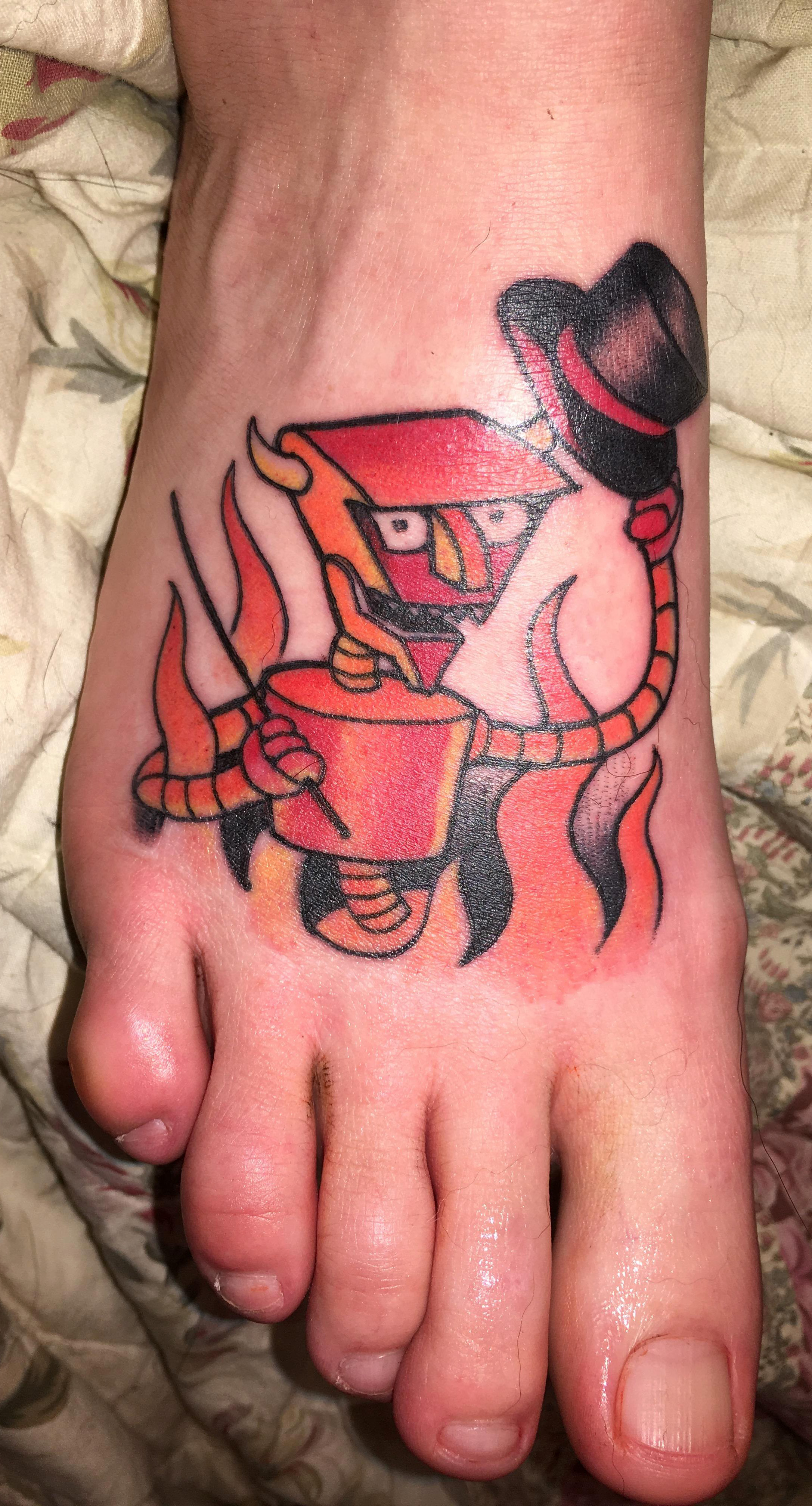 Robot Devil tattoo by Jason at House of Madness, Hampstead MD