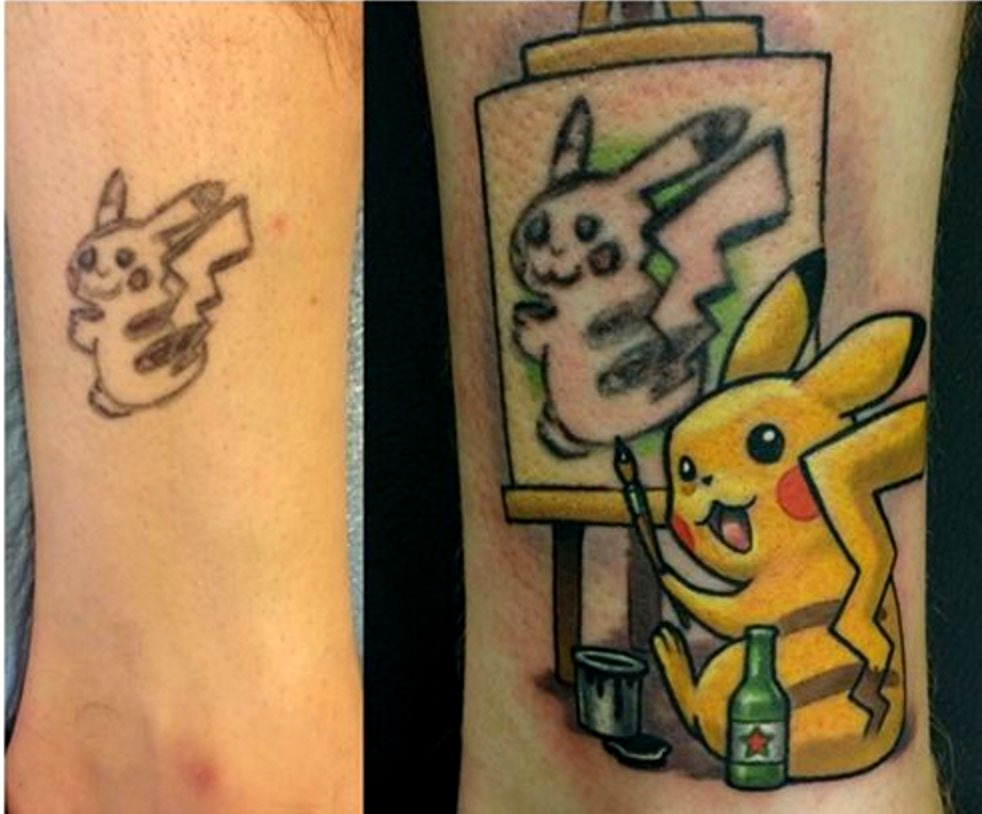 Pikachu, wonderful tattoo cover up