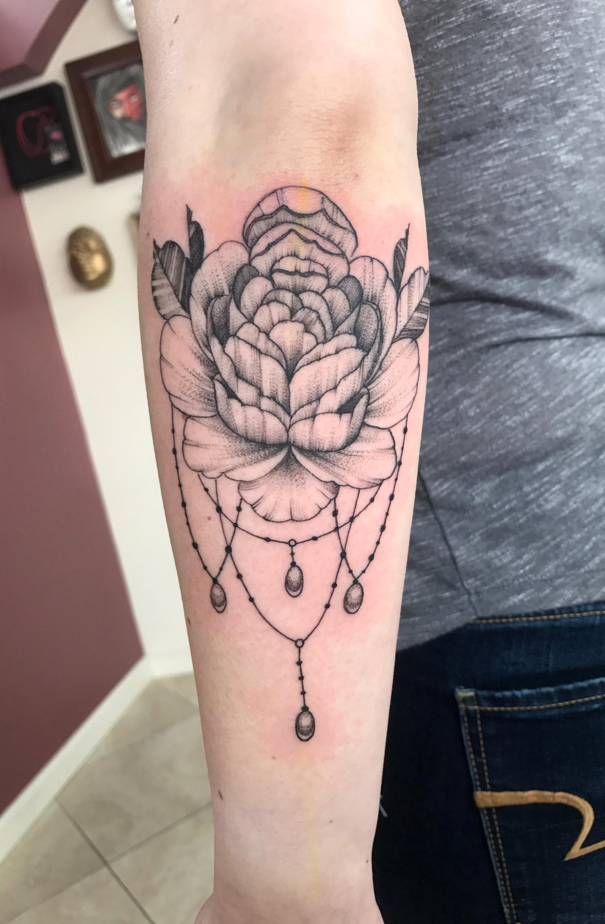 Symmetrical peony tattoo. By Austin Fields at Studio 13 Tattoo in Ft Wayne, IN