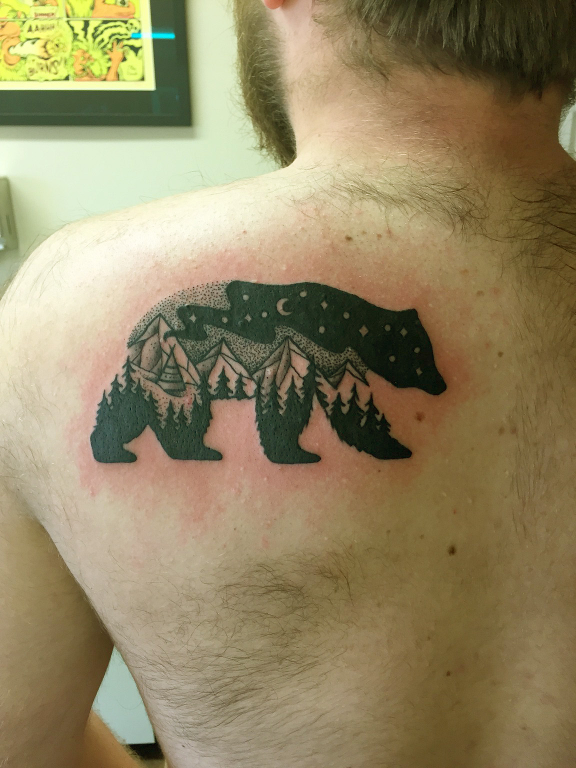 Bear tattoo by Justin Phipps @ East Main Ink, Bozeman Montana