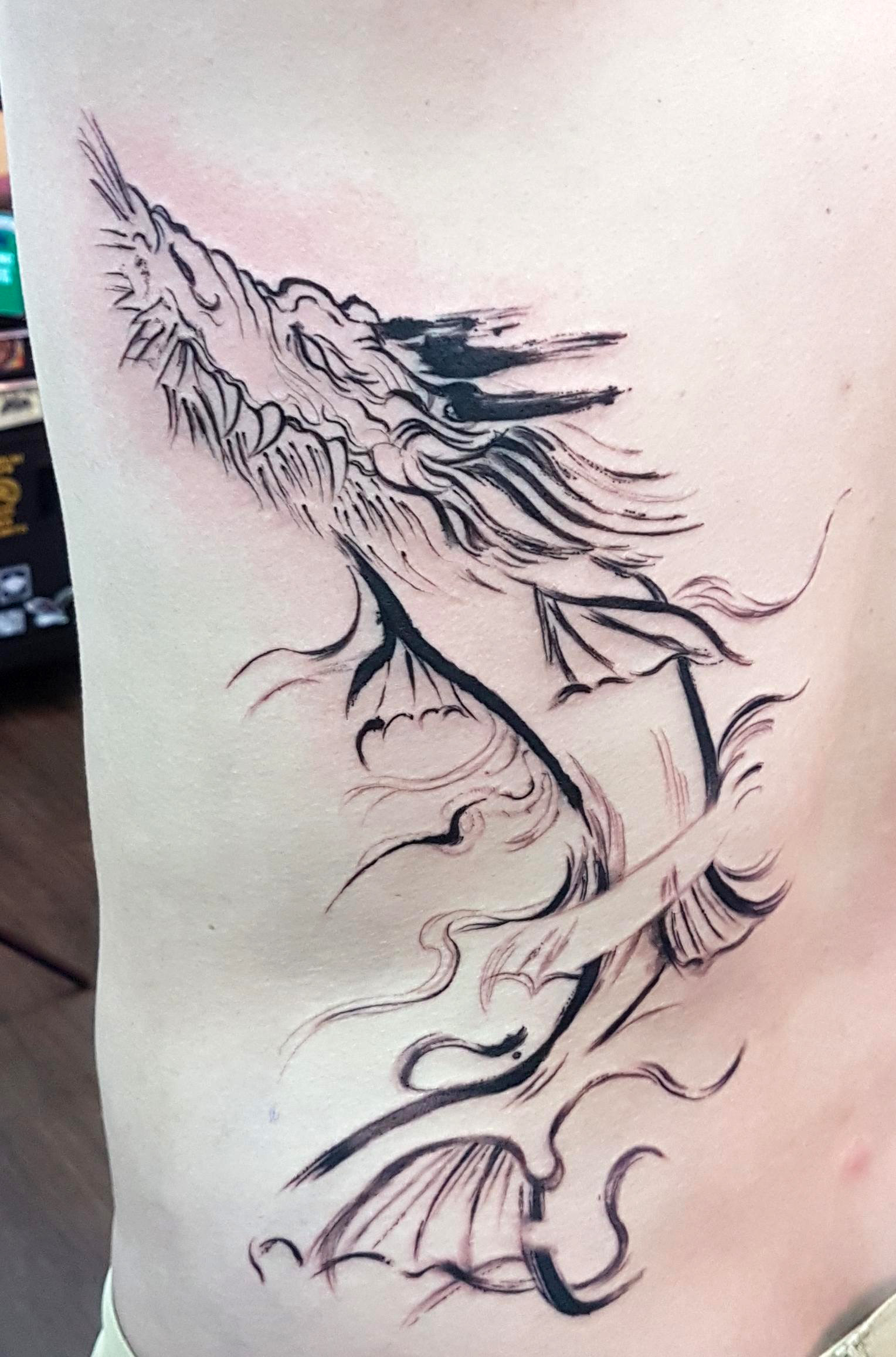 Dragon koi outline by Wang, Friday's Tattoo Studio, Hong Kong