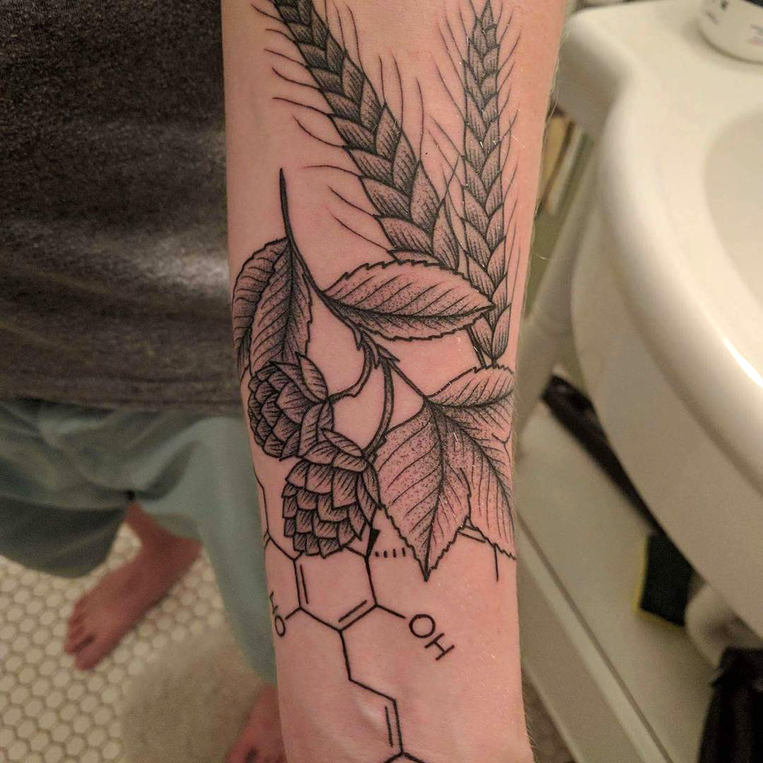Hops and barley, beer tattoo by Shane Olds at Rise Above tattoo in Orlando