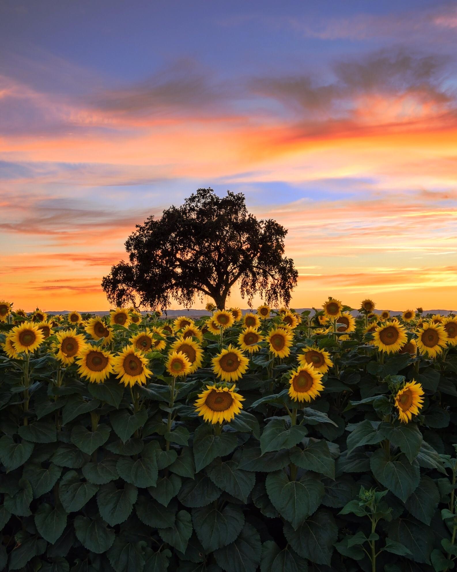 Sunflowers at sunset in Woodland, California, by kathryn dyer