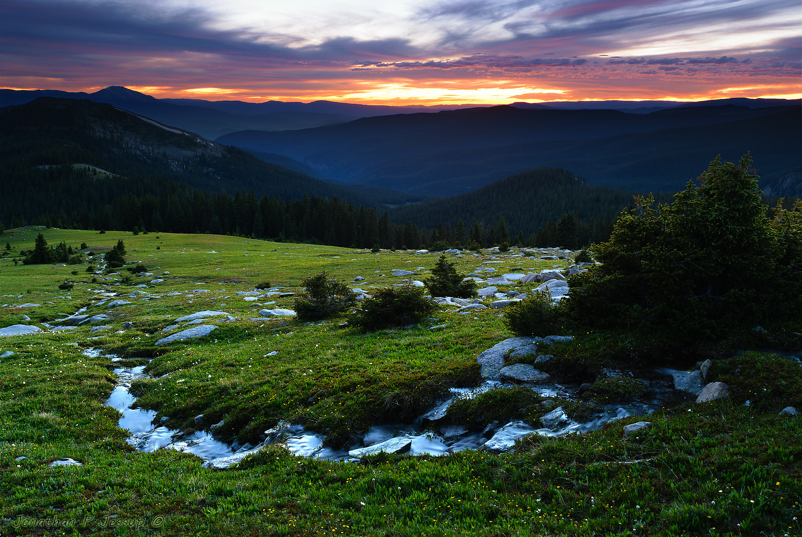 Remote alpine meadow and stream in Colorado