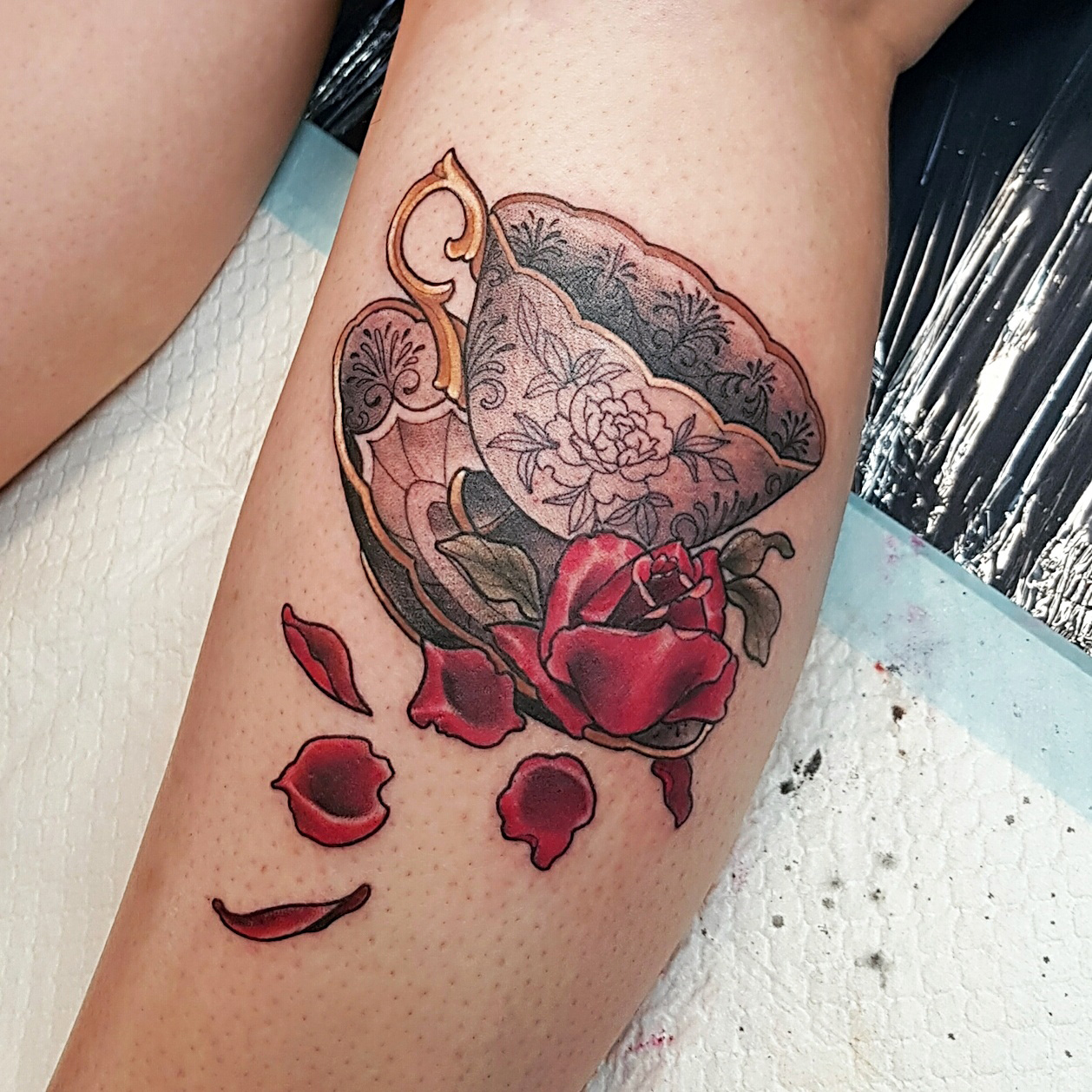 Tea cup, tattoo done by Ellie Thompson at Hybernia tattoo, Surry Hills, Sydney